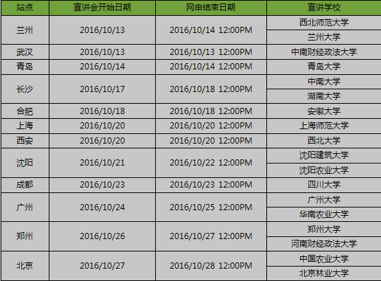 武汉站宣讲安排:时 间:2016年10月13日 10:00AM