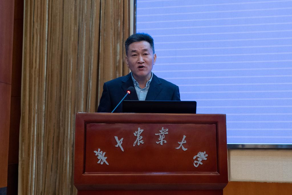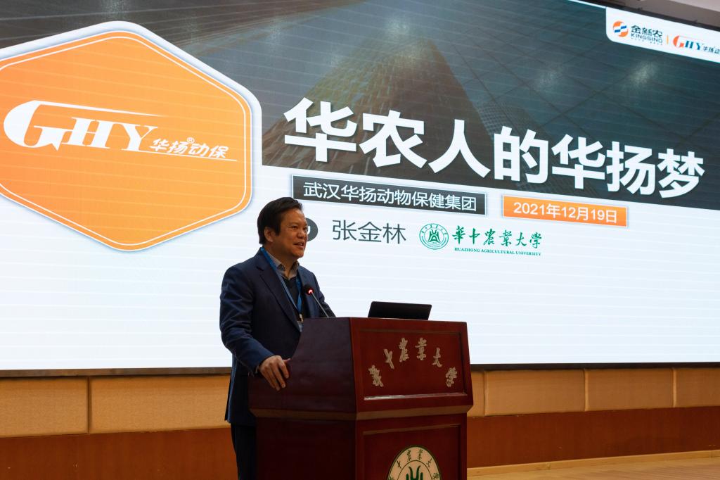 会上,武汉华扬动物保健集团董事长、校友张金林,丰尚农牧装备有限公司人力资源部总经理沈颂康作为奖学金捐赠单位代表发言。张金林从创业经历和企业发展两个方面,向同学们讲述了自己和华农的故事。他分享了自己创业路上的收获:企业发展离不开孜孜不倦的求学精神,更需要的是一颗感恩的心,企业要感恩客户。沈颂康也向同学们分享了核心技术对行业发展的重要影响。二位企业家共同勉励华农学子,传承“宏农学,扬国光”的精神,做全面发展的人,为行业发展作出贡献。