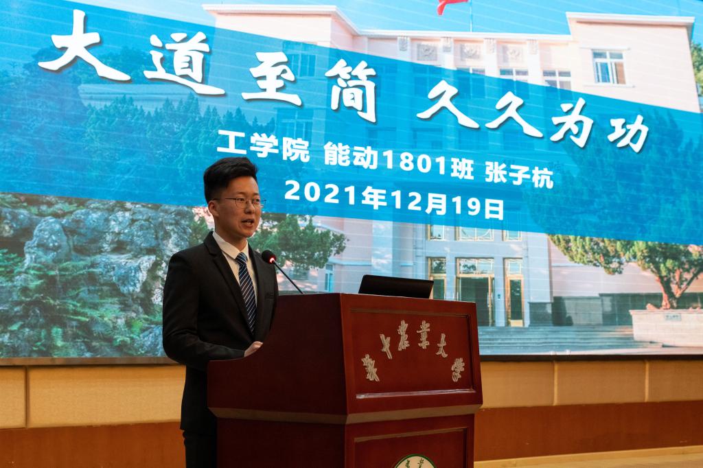 2021年华中农业大学十大标兵获得者能动1801班张子杭同学从学习、科研和学生工作三方面分享他在华农三年的成长经历和感悟。在学习上,课堂专注、课后巩固、及时整理、勤于总结的好习惯让他获得了43门课程满绩点,并多次获得国家奖学金和学习成绩优秀奖;在科研上,他从科研小白一步步探索,虽然科研之路漫长且艰难,但他不畏困难,奋勇向前,以第一作者发表发表SCI论文1篇,申请国家发明专利7项(其中4项已授权),8次参加课外科创竞赛并获奖,正是他努力的成果。同时张子杭躬行实践,乐于奉献,积极参加志愿服务和学生工作,在实践中磨炼自己,在奉献中提升自己。他用始终如一的行动,诠释着笃志好学的态度,用热情与汗水,书写他的华农时光。