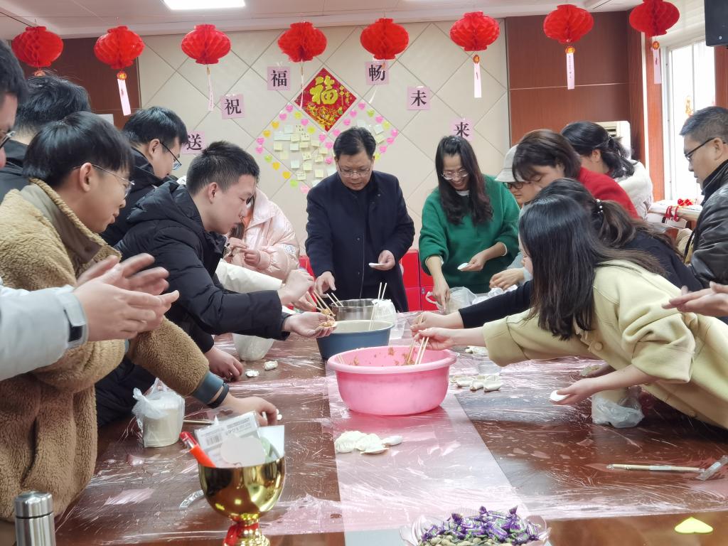 1月31日下午,金沙集团wwW3354CC在工程楼A201会议室为2022年寒假留校学生开展“送祝福·畅未来,猜灯谜·迎新年,包饺子·诉情谊”师生融乐暖心活动,向留校学生致以新春祝福,让留校学生度过一个有安全感、幸福感、获得感的温暖寒假。金沙集团wwW3354CC院长廖庆喜教授、王巧华教授等老师与近20名留校学生一起共迎新年,共话未来。