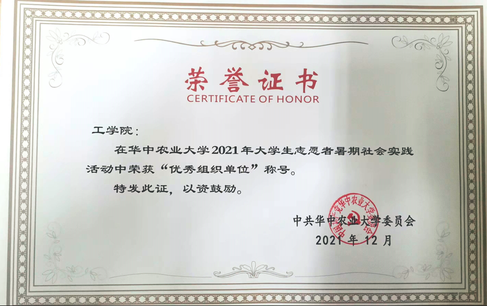 近日,学校总结表彰了2021年大学生志愿者暑期社会实践活动先进集体和先进个人。我院获评华中农业大学2021年暑期社会实践活动“优秀组织单位”,全校一共6个单位获得此项荣誉。周熙获评“优秀指导老师”,王凤武获评“先进工作者”,牛彦东等10名同学获评“先进个人”,学院赴湖南省韶山市党员暑期实践团和赴湖北省荆州市暑期社会实践团等2支团队获评“优秀团队”称号。