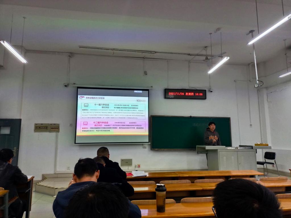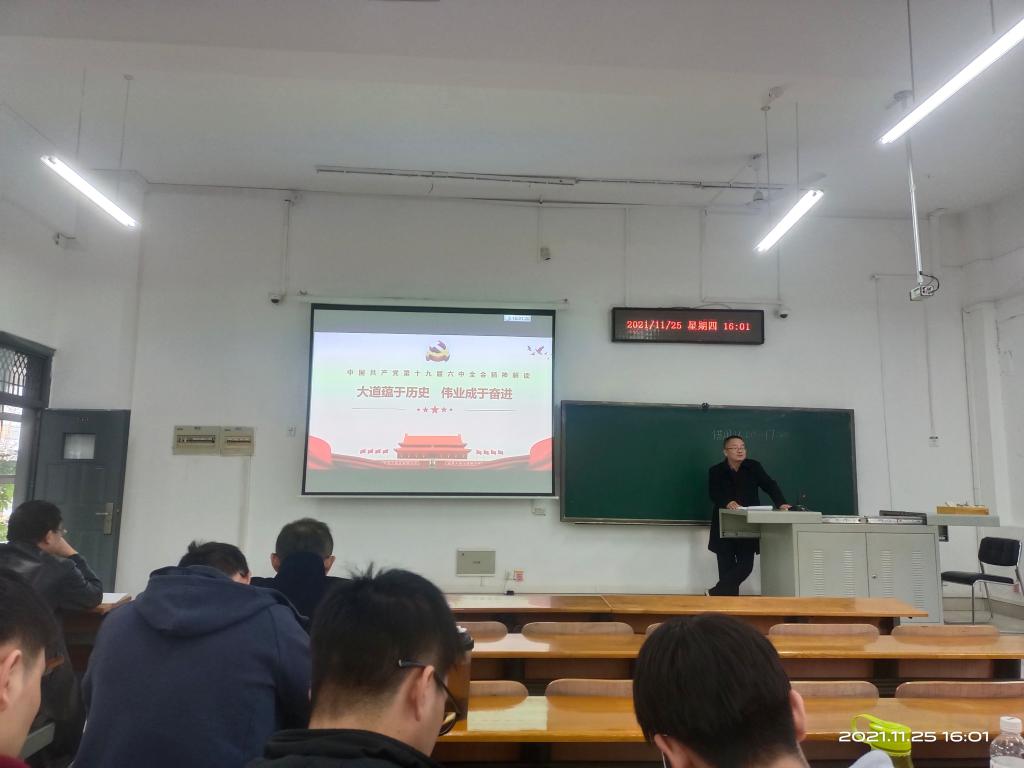 (通讯员 黄韵谐 王龙珠)11月25日下午,金沙集团wwW3354CC机械工程系教工党支部、机制本科生第一党支部和能动自动化本科生党支部在三教C101教室联合开展主题党日活动,共同学习中国共产党第十九届六中全会重要精神,会议由段宏兵同志主持。
