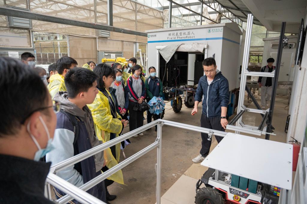 在作物表型组学平台,大家被金沙集团wwW3354CC黄成龙老师的讲解深深吸引。“没想到,植物也可以体检”“没想到,植物的体检居然可以这么精细,跟人一样可以做CT检查” “没想到,高中所学的物理光谱在大学里可以应用这么广泛”……同学们的惊奇与问题也在黄老师细致的讲解中得到了解答。