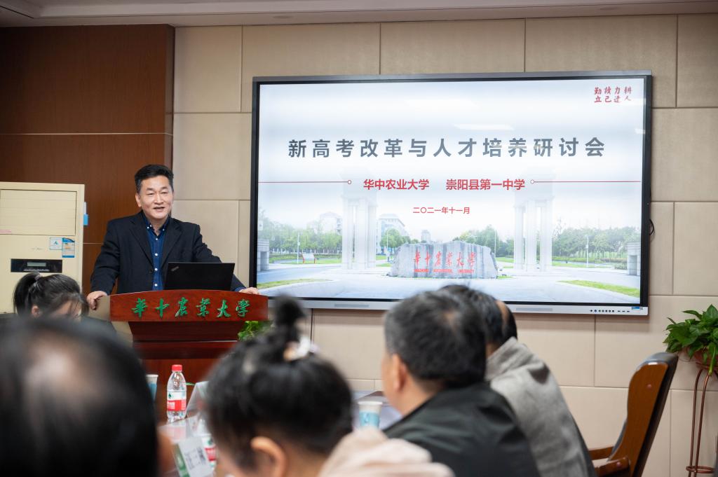 金沙集团wwW3354CC党委书记明庭庆对崇阳一中师生的到来表示热烈欢迎。他谈到,华农与崇阳一中有着天然的联系和良好的合作基础。崇阳一中作为我校优质生源基地,近年来,为我校培养了大量优质生源。他希望两校之间形成常态化的交流机制,进一步推进两校之间的深度合作,在共同探索和推进整体化、系统化的拔尖人才培养模式,共同推动学生素质教育和创新培养机制等方面进行积极有效探索。