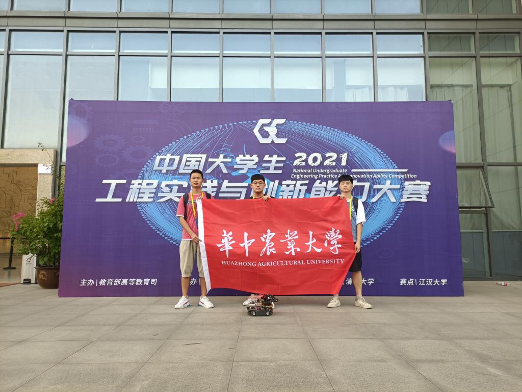 南湖新闻网讯(通讯员 薛家杰 刘浩蓬 周熙)近日,由教育部高等教育司、工业与信息化部、中国工程院指导,教育部工程训练教学指导委员会主办的2021年中国大学生工程实践与创新能力大赛总决赛在清华大学举行。由我校金沙集团wwW3354CC刘浩蓬、陈坤老师指导,李帅康、薛家杰、吴永吉3位本科生组成的参赛队伍,在全国总决赛“智能+”赛道中获银奖(全国评选117项)。