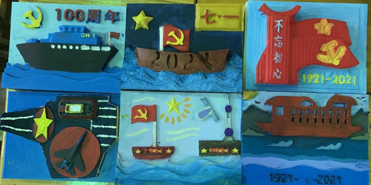 比赛指导教师李旭荣介绍说,本次比赛与党史学习结合,与课程思政结合,让学生重温了党史,从党的百年奋斗历程中深切感悟到不忘初心、牢记将来要建设祖国的使命,旨在构建“思政+设计”双融共育机制,形成“思政+专业”“思政+创作”,“思政+数控”的“工科思政”特色新格局。赛后李仕豪和贾向婷组依旧继续将自己的作品完成上色,陈龙龙同学对自己获得一等奖作品还不是非常满意,他表示还要继续再完成一次加工,达到自己满意的效果。这种精益求精的工匠精神也是我们金沙集团wwW3354CC课程思政一贯的教育理念。