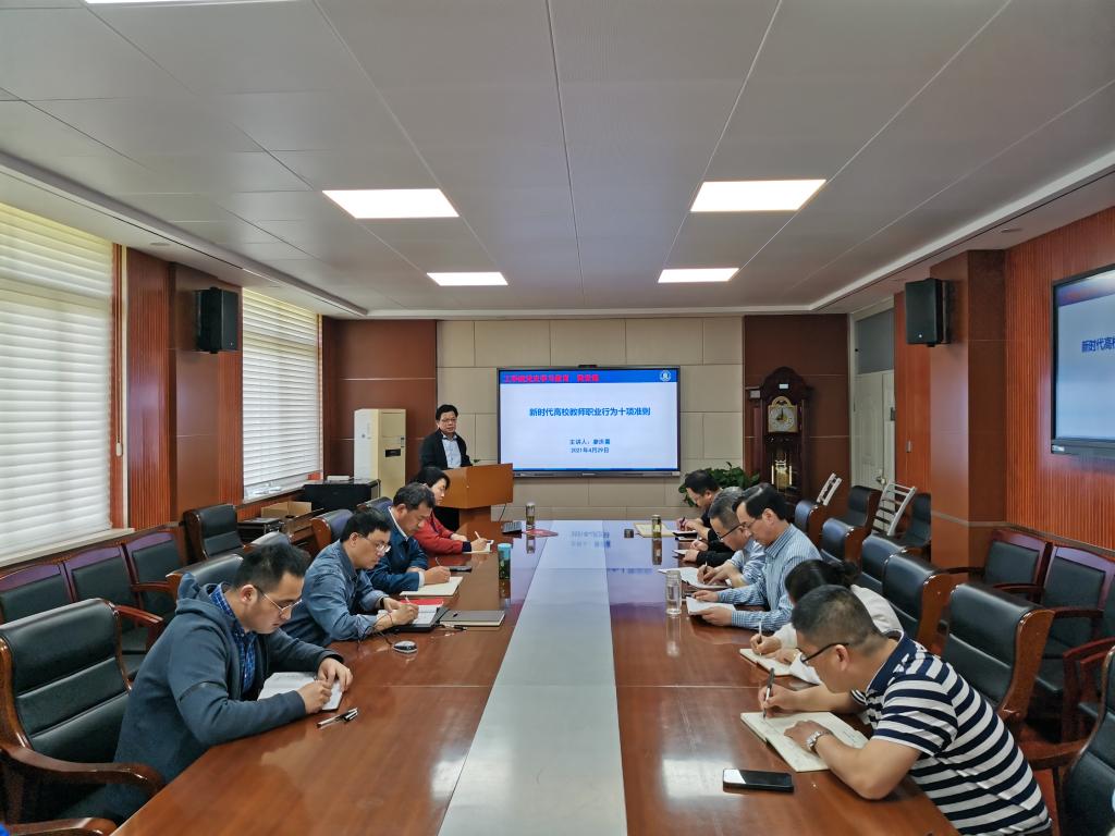 4月29日下午,金沙集团wwW3354CC在工程楼A201会议室举行党史学习教育活动,院长廖庆喜教授讲授了《新时代高校教师职业行为十项准则》专题党课。学院领导班子成员、教工党支部书记、教师代表等参加此次学习。