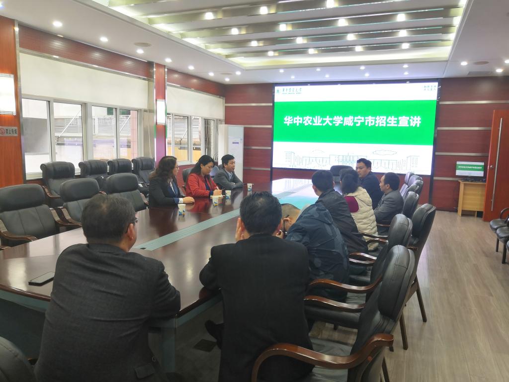 26日下午,瞿明丽一行先后走访了湖北省赤壁第一中学和嘉鱼县第一中学,并与分管校长和高三年级班主任进行了座谈交流。在座谈会上,本科生院招生办公室郑泽涛向当地老师介绍了学校的办学历史、办学规模、学科特色、师资队伍和文化活动等,让当地老师对我校的科研实力和校园文化建设有了一定的了解。随后,郑泽涛对新高考改革背景下学校的招生政策进行了解读,对比我校近三年在湖北省级咸宁市的招生录取情况,具体讲解了我校物理大类和历史大类专业组相关的专业,给出细致的填报建议。