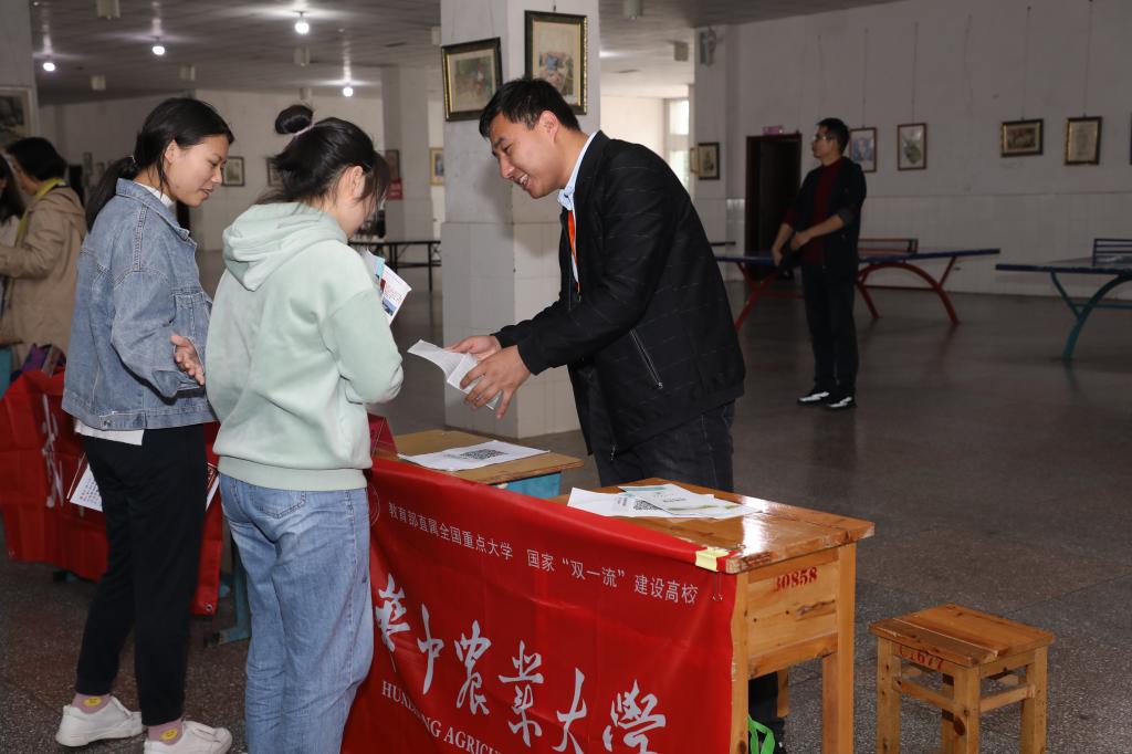 4月21日上午,学院招生宣传工作小组来到重庆市中山外国语学校,参加了现场咨询会,三百余名师生来到现场进行咨询。咨询会结束后,宣传小组参加了中山外国语学校举办的高校座谈会。座谈会上,重庆市中山外国语学校副校长杨武对招生小组的到来表示欢迎和感谢,并介绍了高中生源情况。随后,我院招生宣传工作小组卜祥利对于华农的办学历史,人才培养模式及今年报考的相关政策进行了介绍,希望加强与中山外国语学校的联系,为我校多输送优质生源。