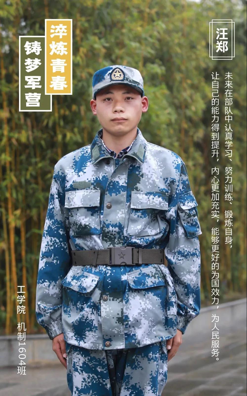 “强国必须强军,军强才能国安。”汪郑说,他为去年在一线抗疫的姐姐而自豪,受到家人的影响,参军入伍的想法变成他心底的渴望,成为一名履行新时代使命任务的军人就成了他的理想。汪郑希望可以为国争光,为国效力,为国服务,在以后的生活里也确定了方向,在军队刻苦训练,同时认真学习。