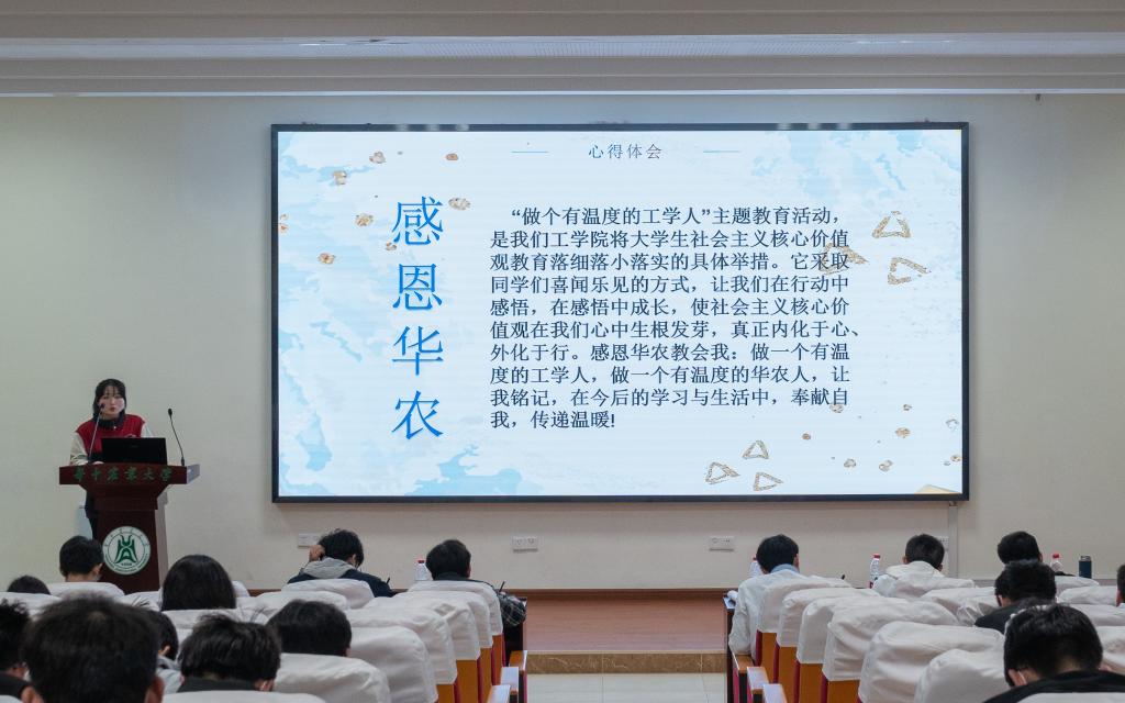 金沙集团wwW3354CC党委副书记瞿明丽表示,学院始终将大学生感恩教育、责任感和担当意识的培育作为大学生的必修课。“做一个有温度的工学人”主题教育活动,是学院将大学生社会主义核心价值观落细落小落实的具体举措。在寒假期间,以学生喜闻乐见的方式开展教育活动,让学生在行动中感悟,在感悟中成长,使社会主义核心价值观在青年学生中生根发芽,真正内化于心、外化于行。
