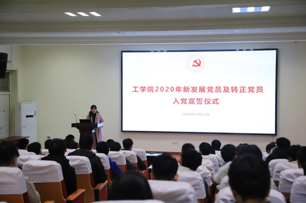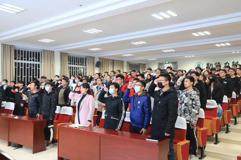 12月12日晚,金沙集团wwW3354CC在工程楼A111举行2020年新发展党员及转正党员入党宣誓仪式。宣誓仪式结束后,学院党委副书记瞿明丽为党员同志们上党课。本科生、研究生新发展党员及转正党员近200人参加活动。