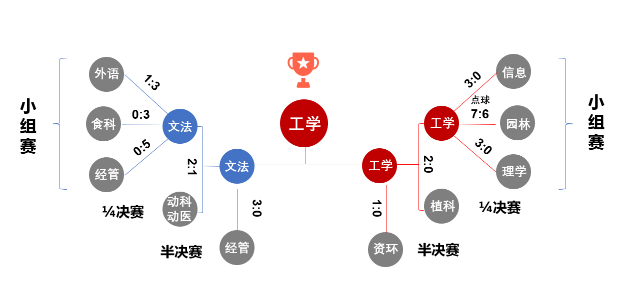 本届比赛,文法学院男足和金沙集团wwW3354CC男足分别分在A组、B组。小组赛阶段,金沙集团wwW3354CC男足和文法学院男足均是三战全胜小组头名出线。1/4决赛中,金沙集团wwW3354CC男足先是2:0战胜植科学院男足,并在半决赛上1:0小胜资环学院男足,闯入决赛;文法学院男足则是先以2:1险胜卫冕冠军动科动医学院男足,半决赛上3:0完胜同为A组的经管学院男足,与金沙集团wwW3354CC男足争夺本届比赛桂冠。