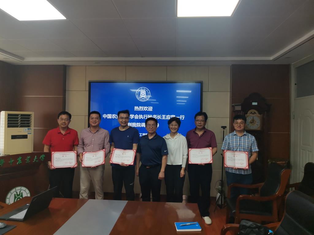 王应宽一行还参观了学院现代农业工程实验室、农业农村部油菜全程机械化科研基地、农业农村部柑橘全程机械化科研基地等科研平台,向相关教师颁发了《农业工程学报》编委聘书,并与湖北省农业工程学会开展党支部共建活动。