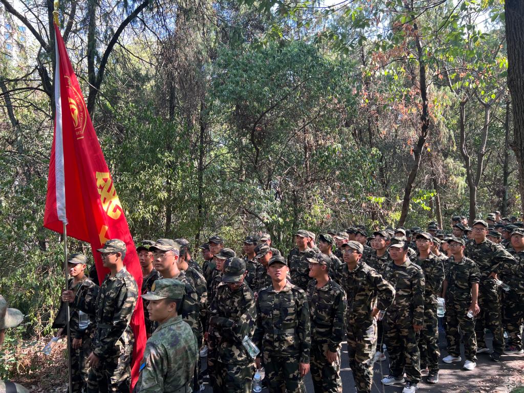 纪念活动结束后,师长下达出发命令,十公里的野外拉练随即开始。浩浩荡荡的队伍像长龙一般蜿蜒盘绕,在朝霞的映衬下,一张张笑脸显得更加坚毅笃定。行进途中,同学们迈着整齐划一的步伐,行走在南湖畔、狮山上,观赏着华农的一草一木。同学们相互支撑着、鼓励着,两个半小时的拉练中无一人掉队,全员准时到达集合场地,圆满完成了本次野外拉练任务。