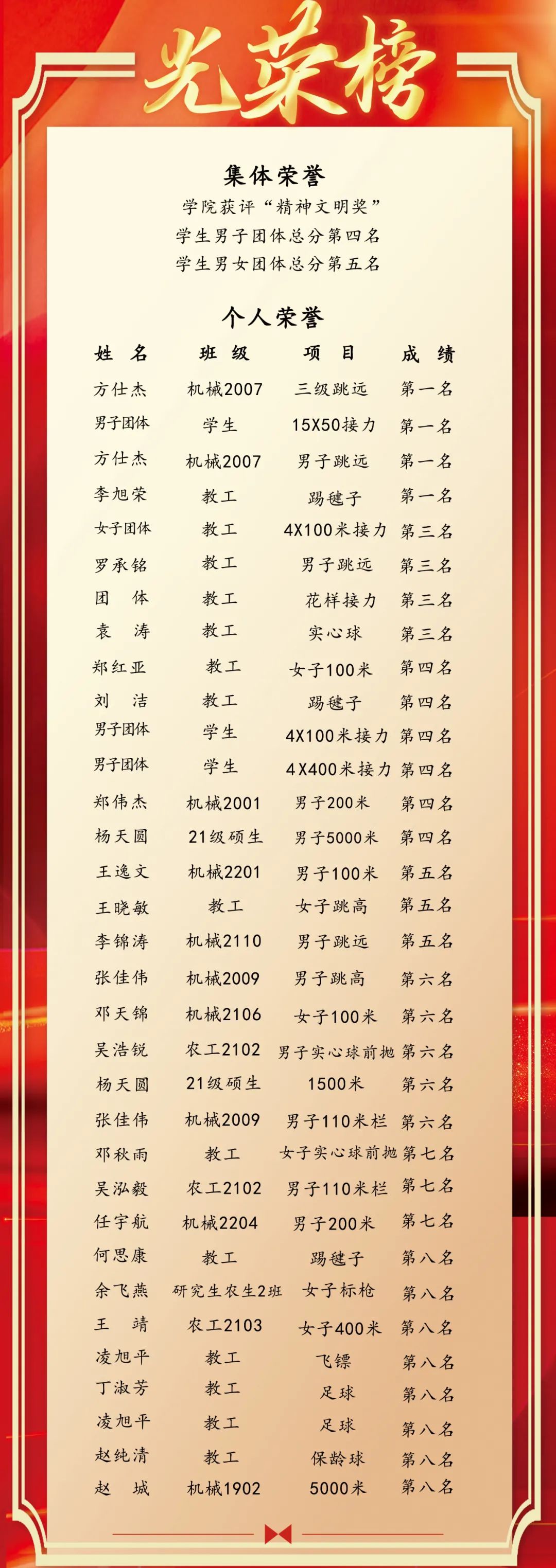 【运动会】光荣榜 | 第六十一届体育运动会闭幕,我院师生取得优异成绩!