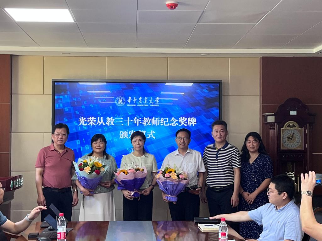 院长廖庆喜首先祝大家教师节快乐,感谢老师们对学院事业发展做出的贡献和努力。他表示,今天的活动是老中青结合,无论教职工的荣休、从教30年还是新入职都是人生的重要驿站,作为一名教师,首先要始终坚持立德树人根本任务,把教书育人作为第一职责、把师德师风作为第一标准,坚持四个面向,胸怀国之大者,服务人才培养和产业服务。我们要始终有大格局、大担当、大胸怀,保持敢作为的年轻的心态、敢拼搏的精神状态,秉承“不张扬、不浮躁、不盲从”的华农品格,奋力前行、笃行不怠!。