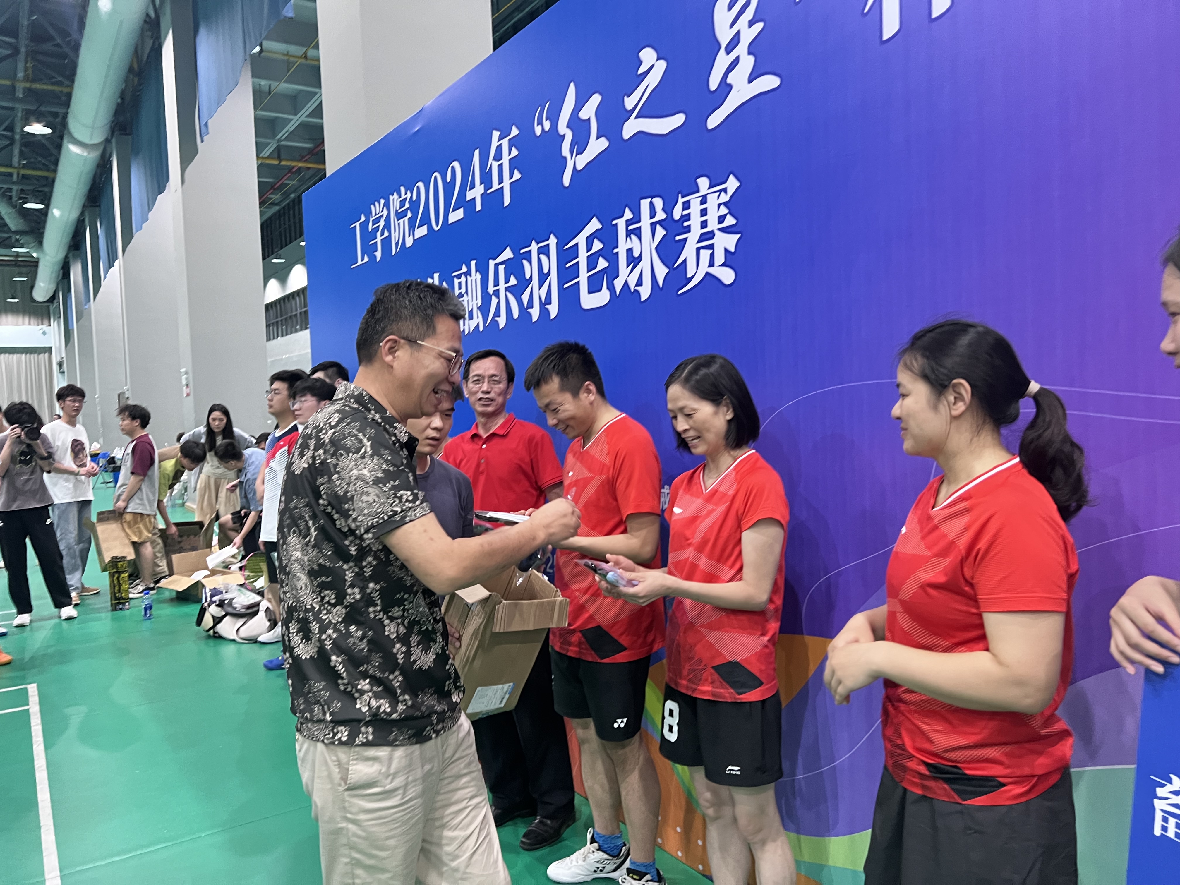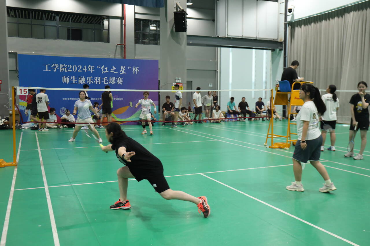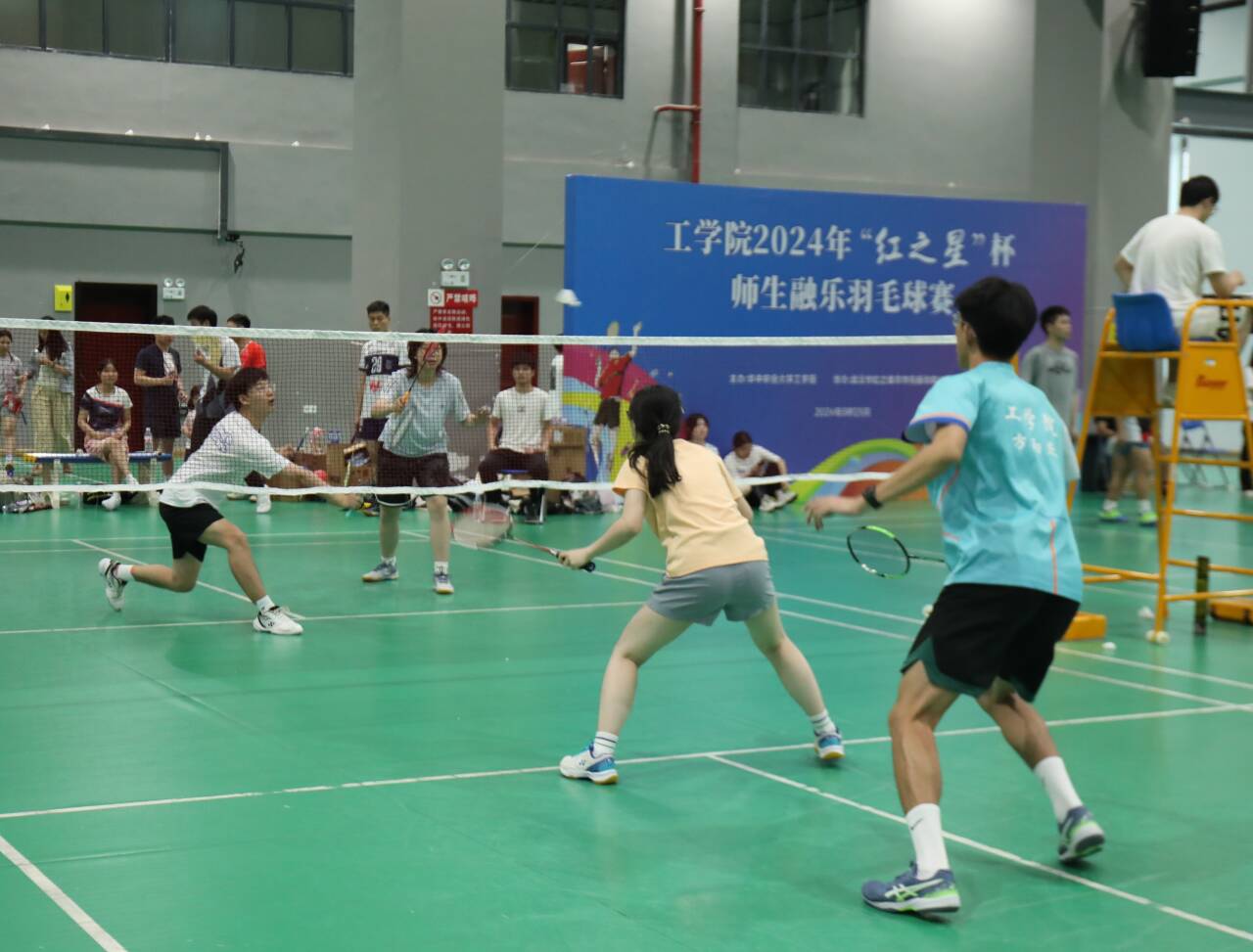5月25日下午,金沙集团wwW3354CC2024年“红之星”杯师生融乐羽毛球赛在东体育馆隆重举行。本次比赛以学院的八个科研团队为参赛单位,以混双1、男双、混双2、女双、男单等五个项目进行团队比赛,混双1、男双、女双三个项目要求师生组队比赛。来自八个团队的近200名师生齐聚一堂,在球场上享受运动乐趣,增进师生交流。