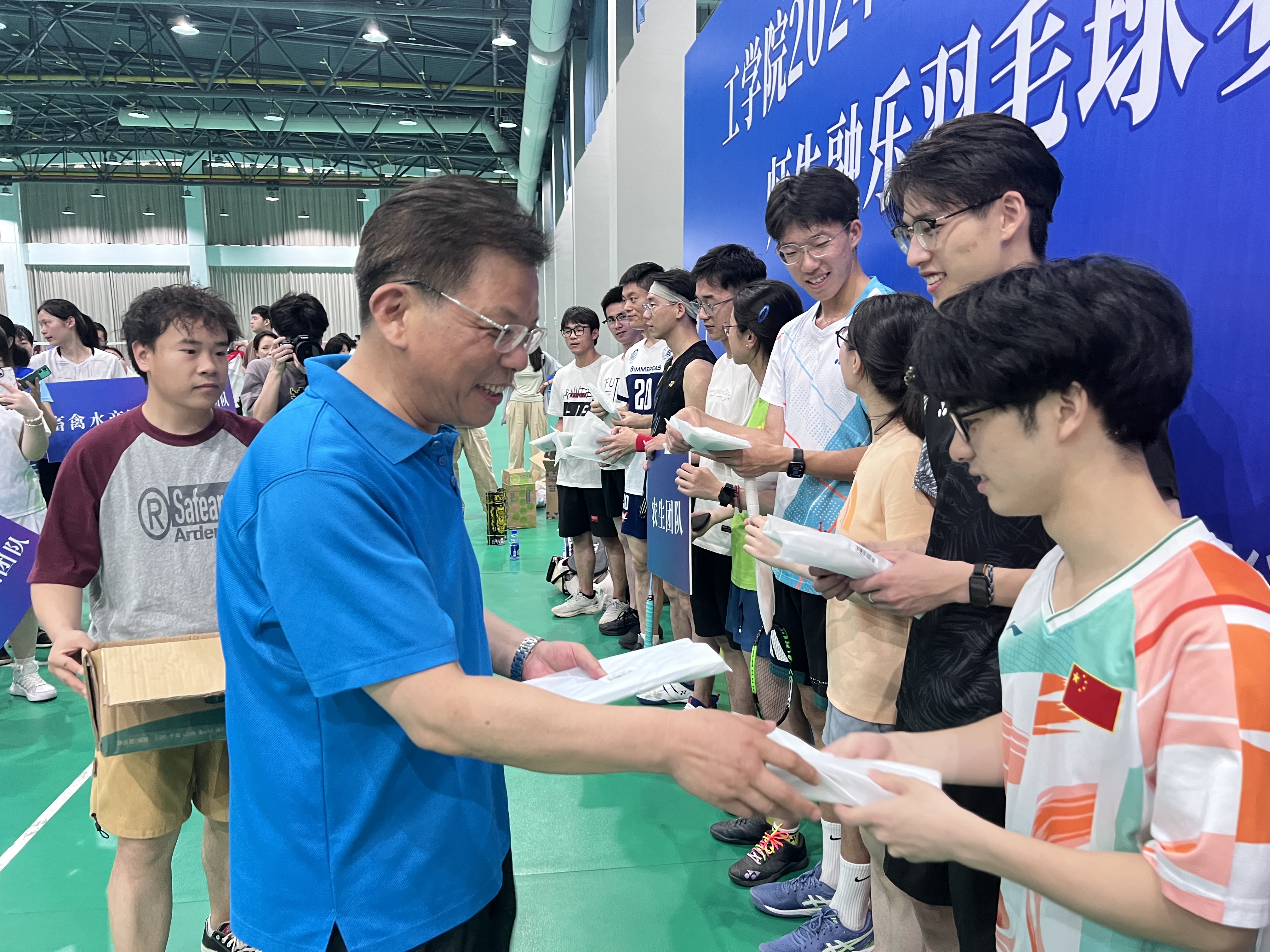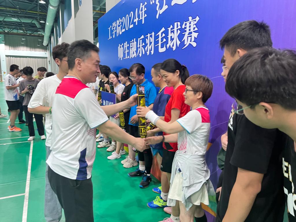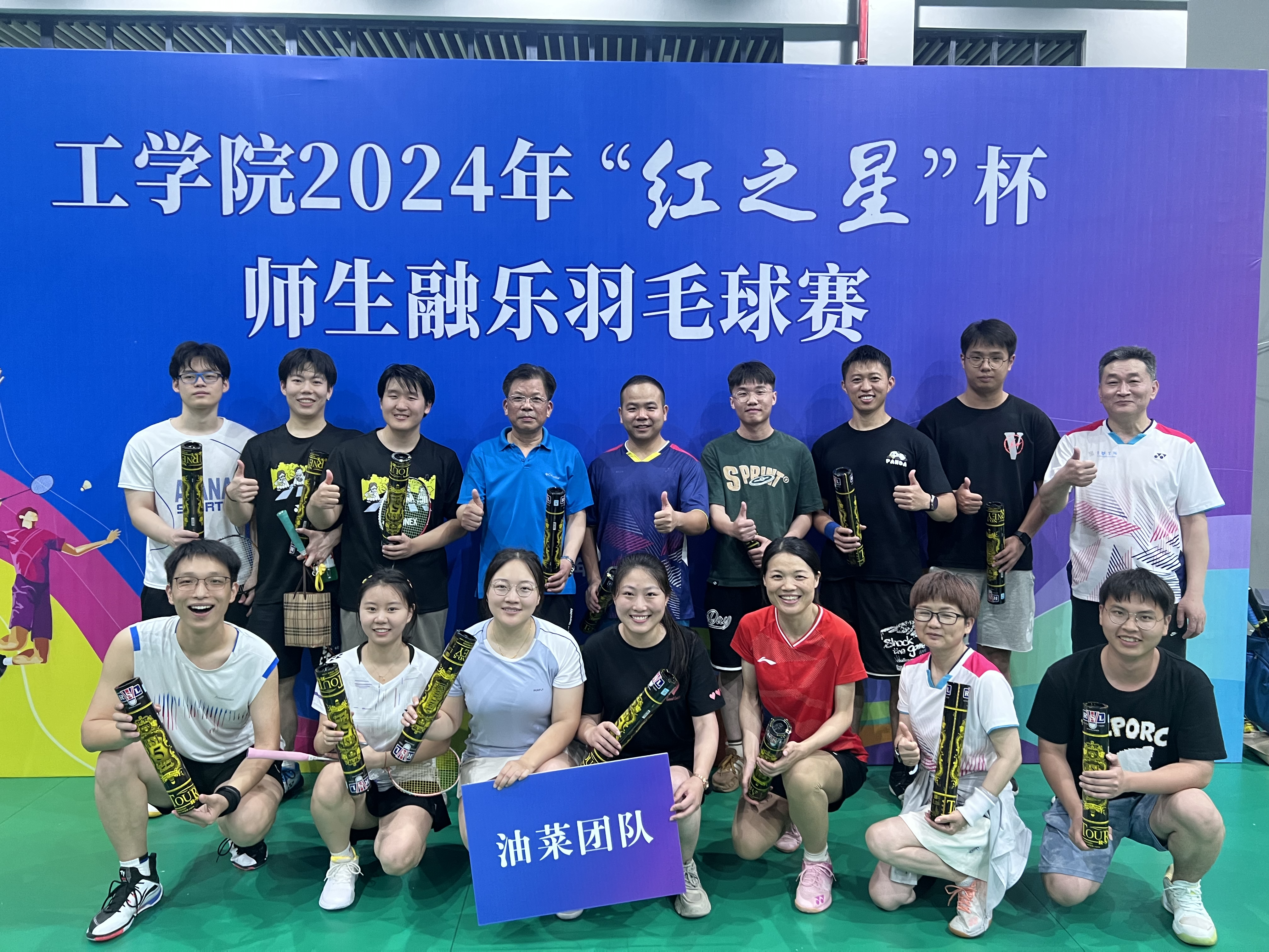 5月25日下午,金沙集团wwW3354CC2024年“红之星”杯师生融乐羽毛球赛在东体育馆隆重举行。本次比赛以学院的八个科研团队为参赛单位,以混双1、男双、混双2、女双、男单等五个项目进行团队比赛,混双1、男双、女双三个项目要求师生组队比赛。来自八个团队的近200名师生齐聚一堂,在球场上享受运动乐趣,增进师生交流。