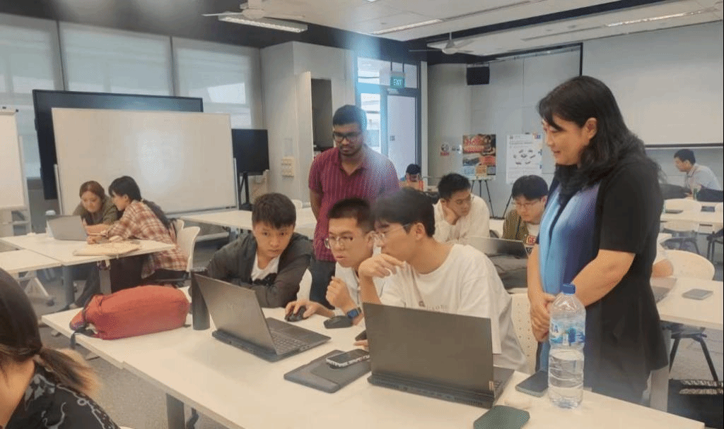 除了丰富的理论课程,实践环节同样精彩纷呈。由新加坡科技设计大学的Mohan Rajesh Elara 教授带来的“集成电路变为现实:机器人应用”课程,让同学们兴奋不已。在这个课程中,同学们分组合作,动手操作编程代码,努力让机器人穿越迷宫。